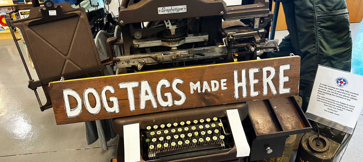 Get your personalized Dog Tag set created on our World War Two-era Graphotype Machine! Order online now!