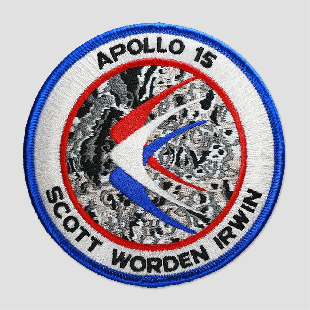 Apollo 15 launched on July 26, 1971. This patch features Commander: David R. Scott, Command Service Module Pilot: Alfred M. Worden, and Lunar Module Pilot: James B. Irwin.