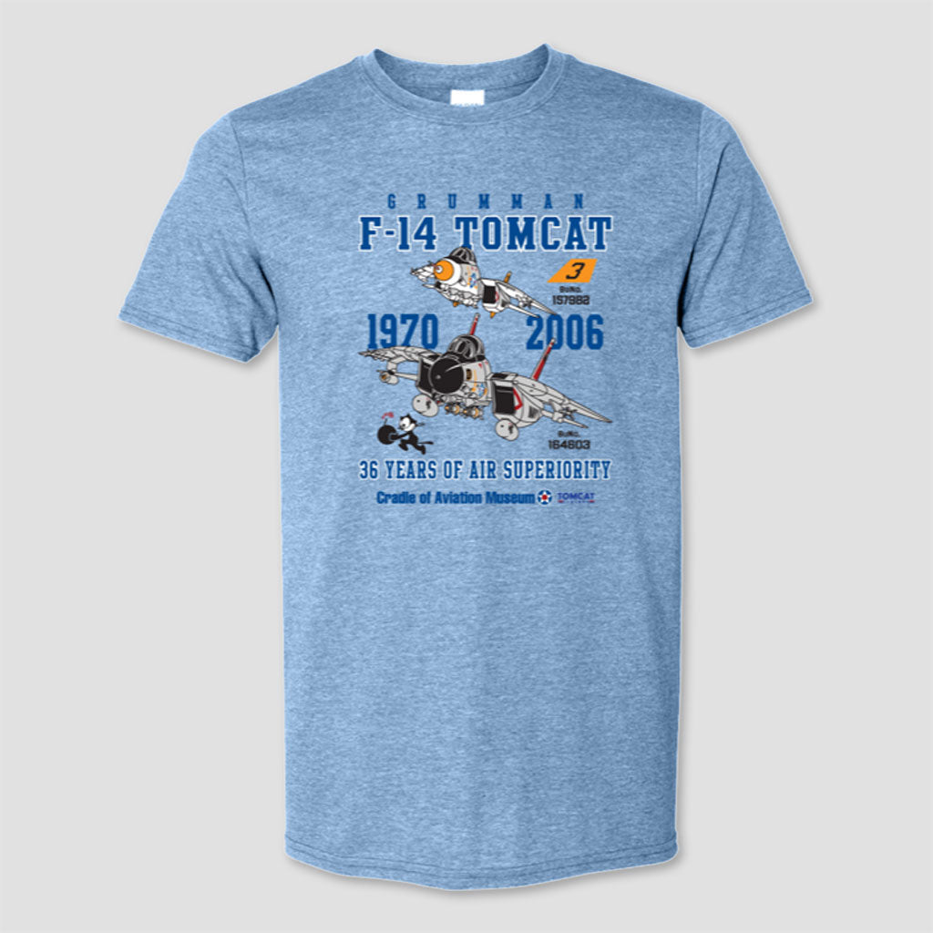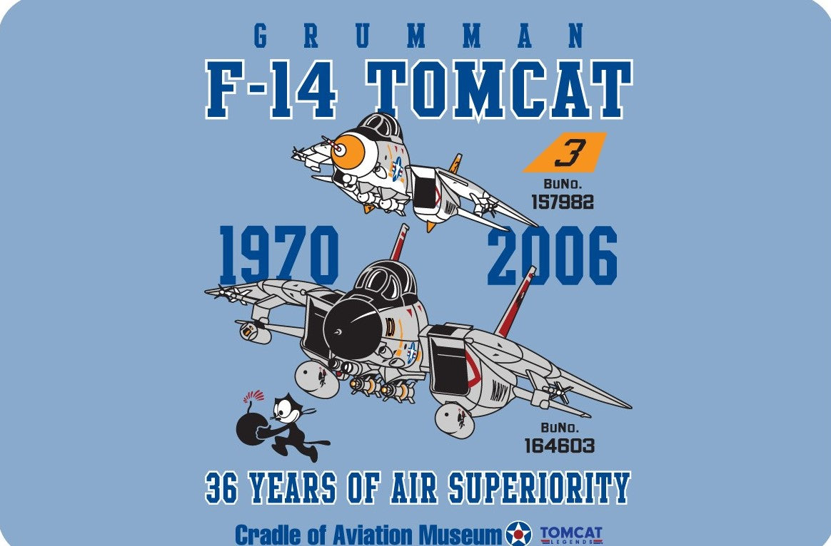 Learn the history and celebrate the legacy of the F-14 Tomcat with our brand new Cradle of Aviation Museum Tomcat History T-shirt!