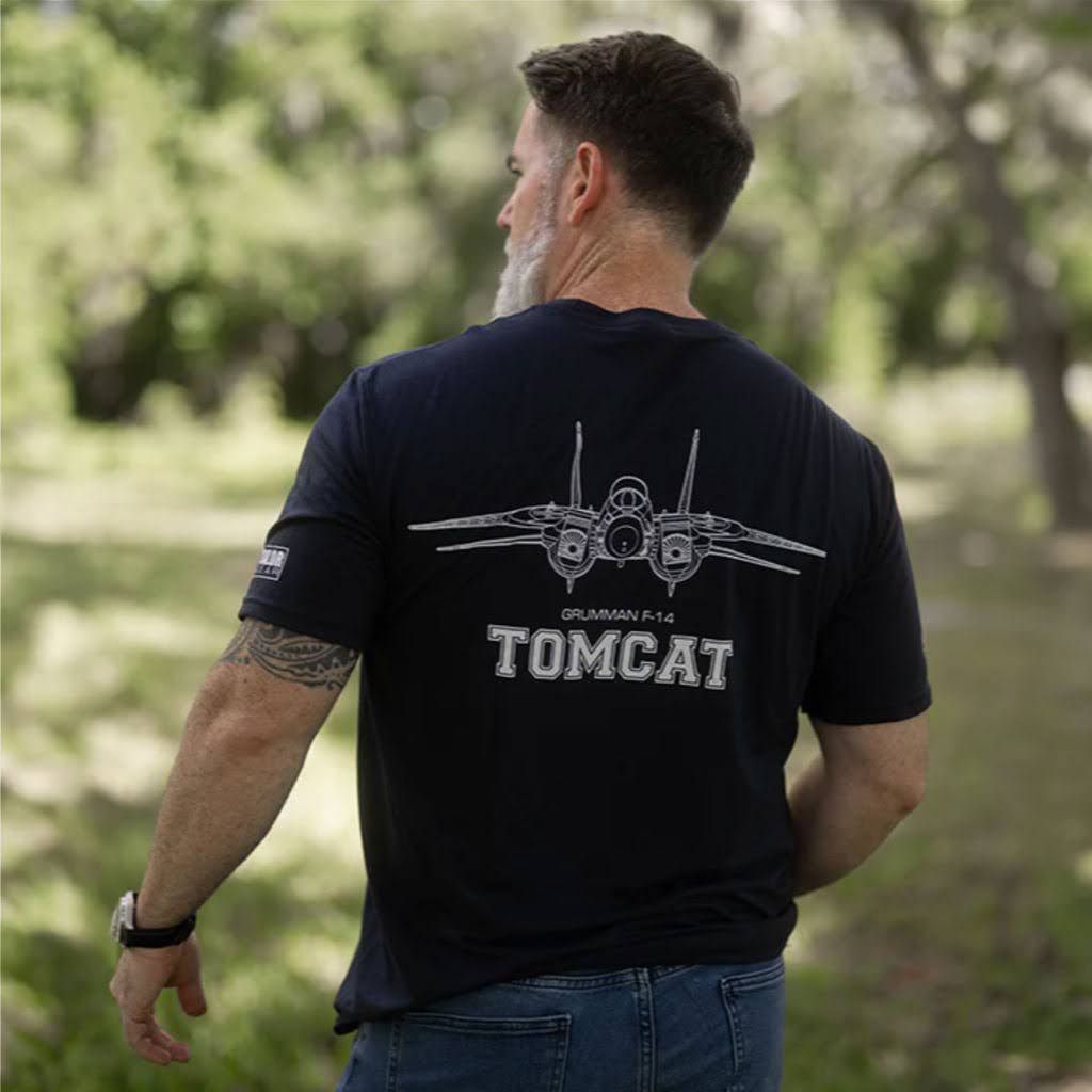 Check out a new piece of our Blueprint Collection, a soft navy blue t-shirt featuring the F-14 Tomcat! The F-14 took its first flight in 1970, and was the U.S. Navy's aircraft of choice well into the 2000s. We have 2 of them on display here at the museum, including the last one actually flown by the navy!