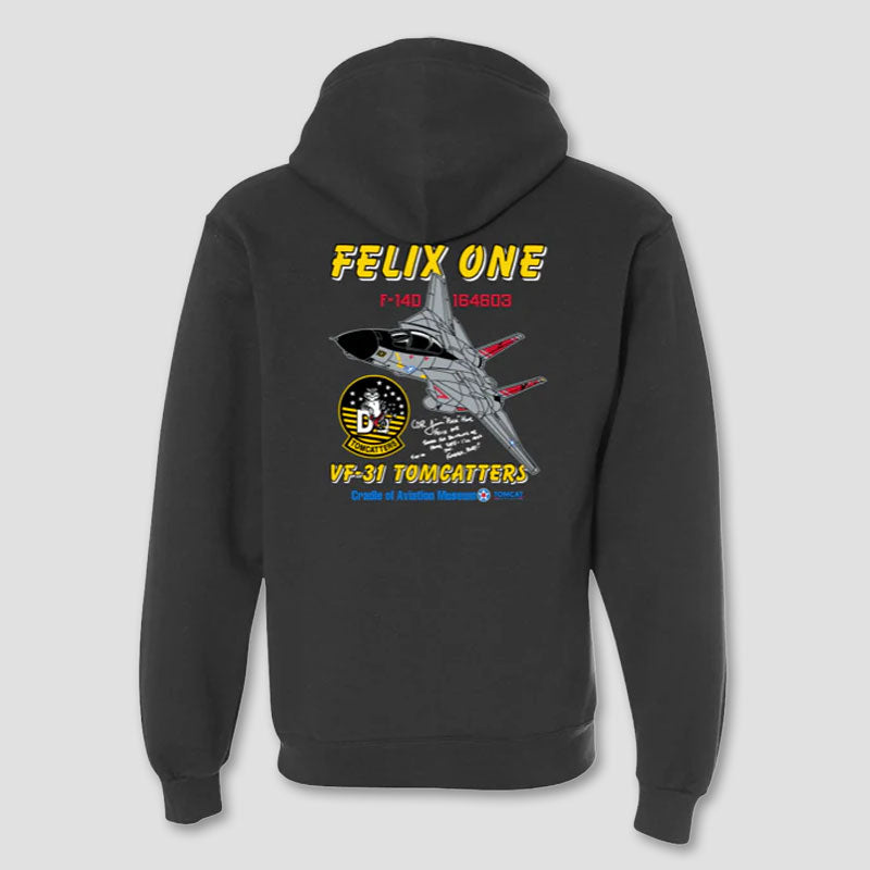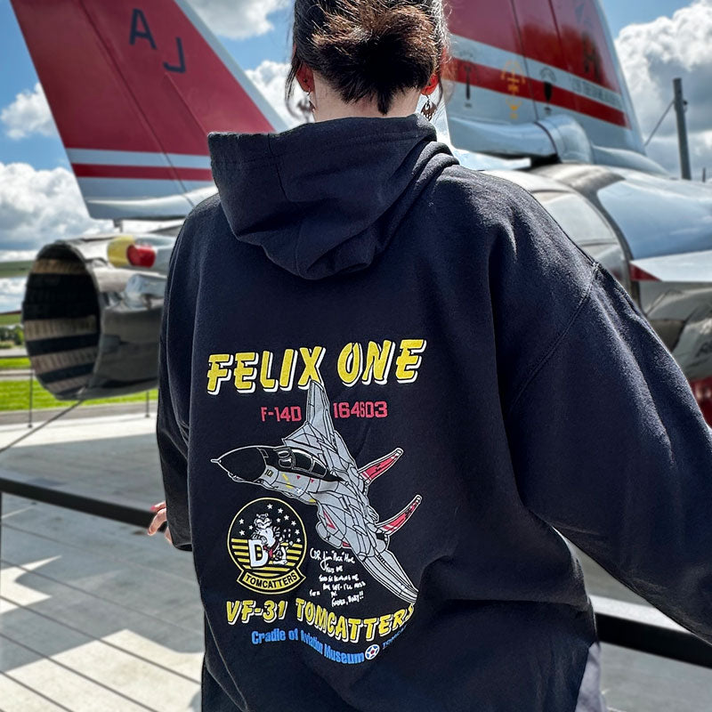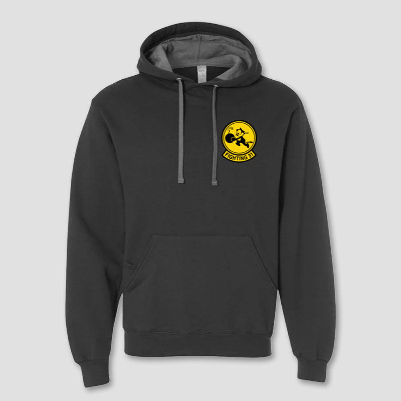 Brand New Fighting 31 Hoodie! This hoodie features Felix and the VF-31 Tomcatters in a custom design you can only get here! This garment is light-weight and super soft, making it perfect for fall.