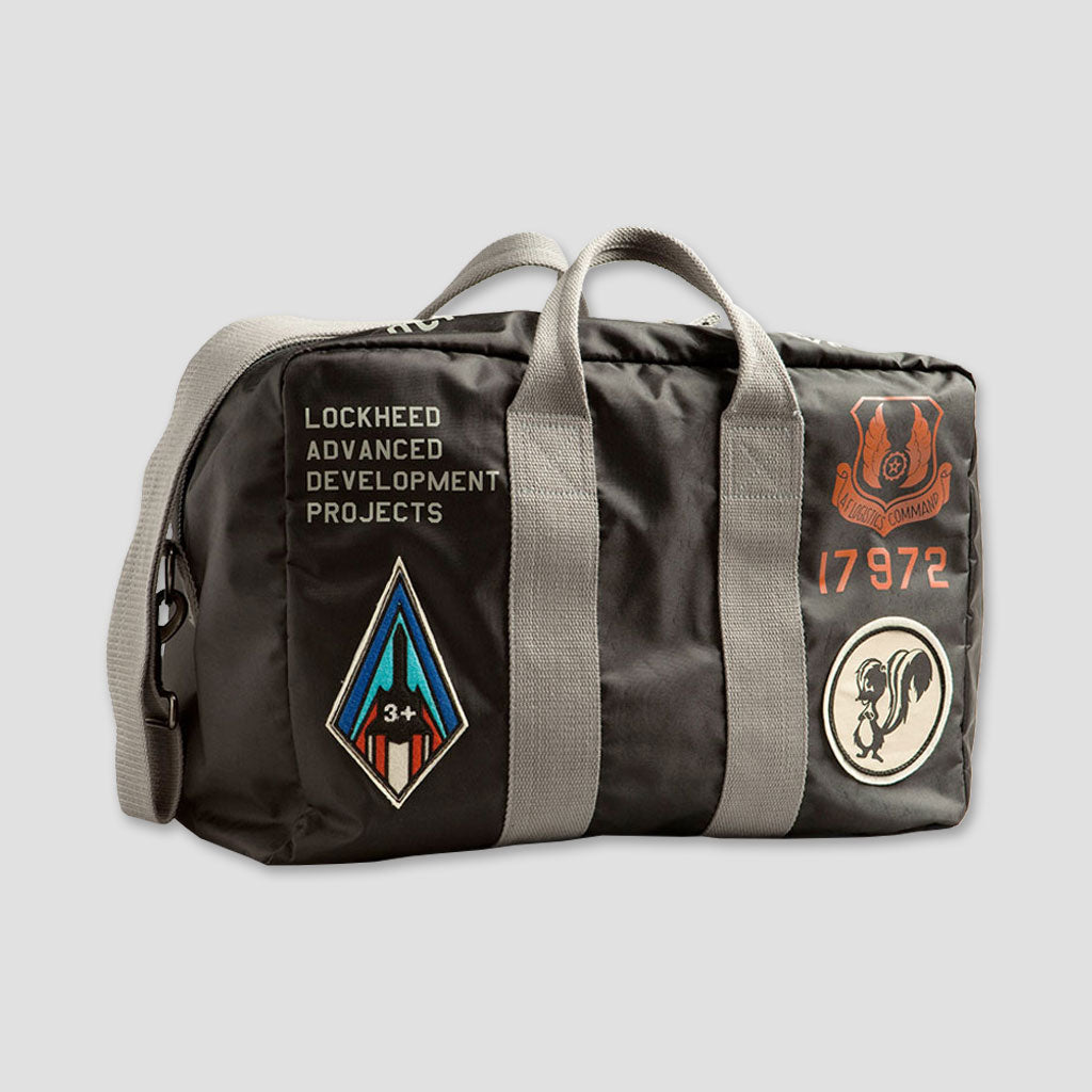 This Lockheed Martin Kit bag features the brand logo and the Skunkworks insignia on the back. Made of black nylon; and has durable handles and an adjustable shoulder strap making it easy to carry. There are also five interior pockets for extra storage and organization. Perfect weekend bag!