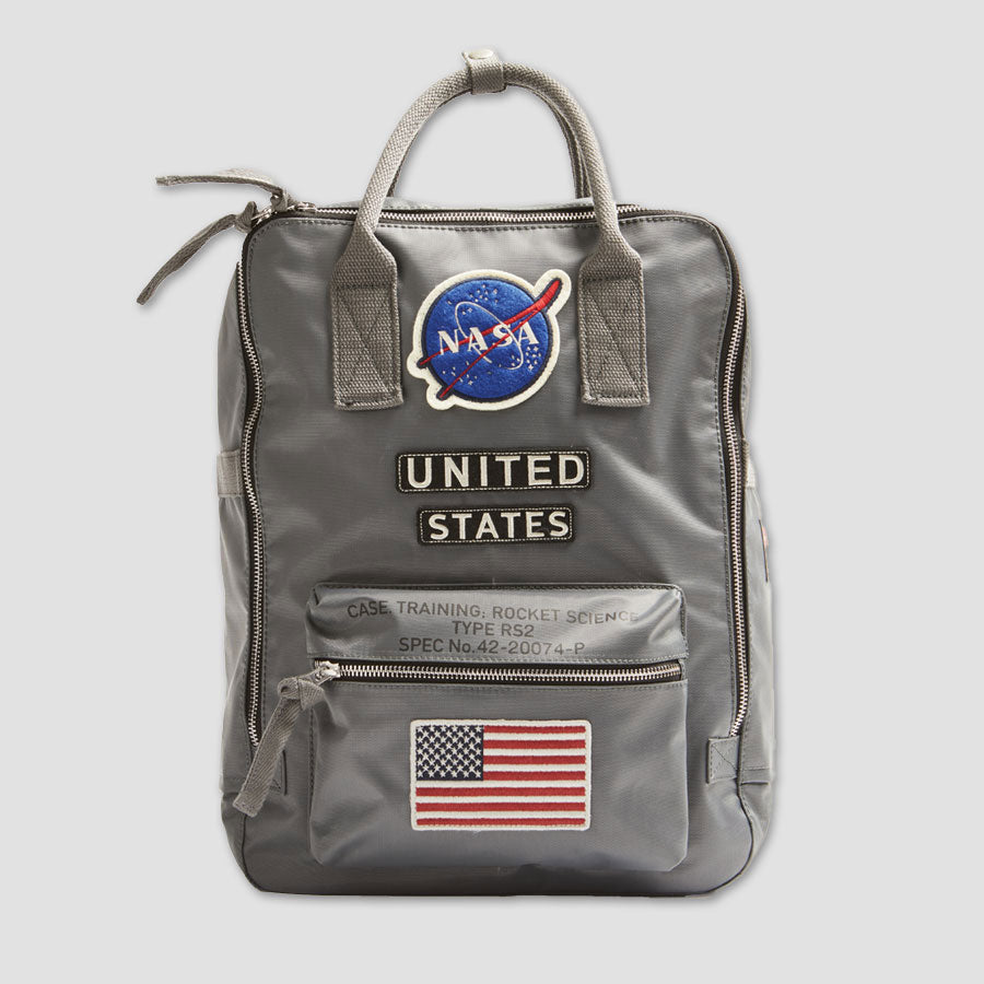 The rocket scientist backpack sports a nylon body with zippers, NASA patches, side pockets for water bottles or a small umbrella; plus a front pocket for maps, keys and a phone!
