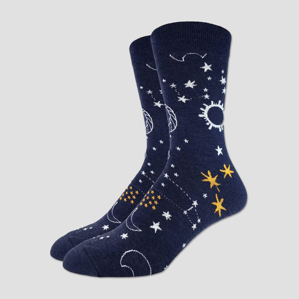 Navy blue socks with a dreamy constellation pattern